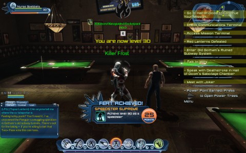 Ding! 30! Just like in the original Guild Wars, the road to level cap in DC Universe Online is pretty much an extended tutorial ahead of the real game. As in Rift, the instances you get while leveling are just rough sketches of the instances as they appear at max level, when you get a chance at the REAL fight. And better loot. I started Nurse Goebbels (please, feel free to report this name I now regret) (and it should have been Nurse Mengele anyway) (I was trying to think of something really villainous, but I kinda went too far). Anyway, I started Nurse G as an outlet for DCUO game play when I couldn’t play my Team Spode main, Teal Lantern. We have leveling restrictions in place so that people with a lot of time to play don’t outlevel people with little time to play. ...