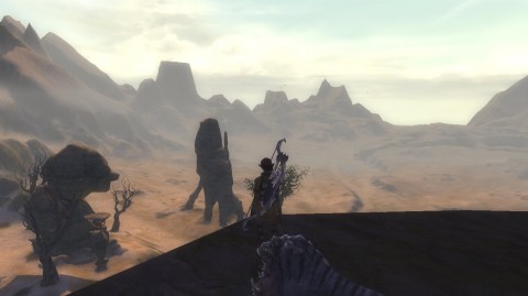 Pictured is the Droughtlands, from a high vantage above the desert floor on a plateau called Lantern Hook. There’s a neutral city within it, and…