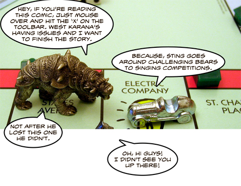 Header pic has nothing to do with this comic. Header pic was based off an old John Varley story. My sister had gone to Germany, and she brought me back a German Monopoly set, so it was always going to eventually show up here. The German set didn’t have metal playing pieces. The German dialog is from Young Frankenstein. I’m pretty sure it should be “Lass ihn” instead of “Lass im”. The Latin bit is the Dies irae, and I probably used it because of Mozart writing music for it in “Amadeus”. This comic is just a bunch of stuff I had lying around the house and in my head :-) ...