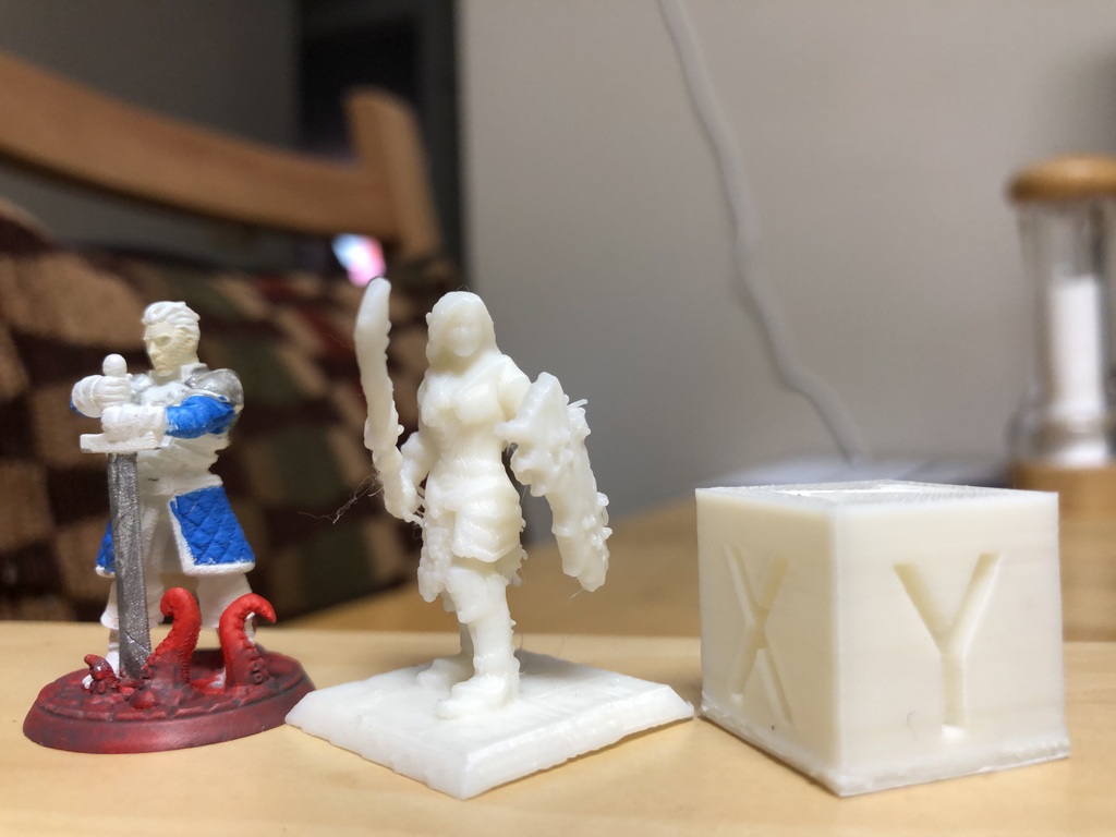 I want to point out at the start that I did not buy a 3D printer to print miniatures. I bought it to print terrain and other parts for board games, and whatever other fun stuff I think of. My *boyfriend *is buying a 3D printer to print miniatures. He’s a chemist. He can safely use one of those resin printers with smelly chemicals and stuff. Super high resolution, and the minis will look fantastic. ...
