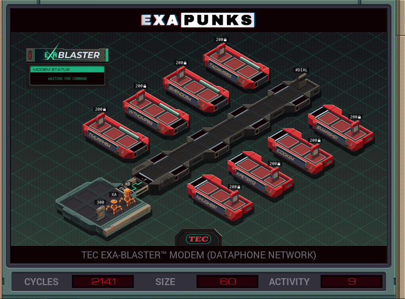 Okay, I have been working on EXAPUNKS the last few weekends, and dreaming about it most nights. But I’m done with the main plot; got the achievement for proof, and I’m going to exorcise the game by writing down how I solved each puzzle.
