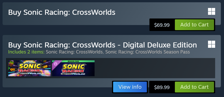 But at $90 for everything, for a season pass that just promises more season passes to buy in the future, I have to say no. Not today. I still have thirty years of kart racers that are just as good, many of which feature Sonic and his friends, I can play. It’s just too much for, in my opinion, too little.