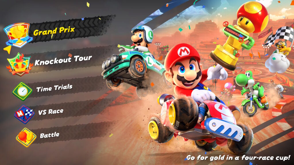 The tracks are callouts to the classics, plus new tracks inspired by famous Nintendo video games – the Donkey Kong tower level is hilarious fun. Not to mention the “free roam” racing, which reminds me of the Forza Horizon games. You’re running around in your cart, playing havoc with the normal traffic, when you see a P button that will start you on an immediate adventure – sometimes racing, sometimes doing tricks, sometimes a time trial, sometimes chasing a treasure goblin.