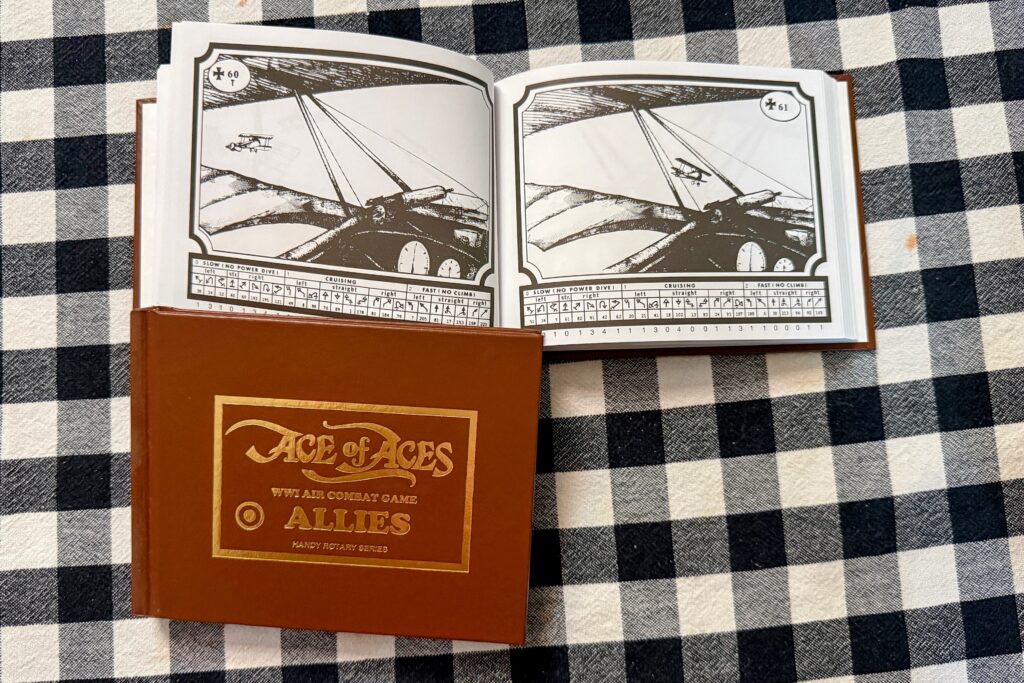 This latest round of reprints comes from NOVA Game Designs, led by Leonardi’s daughter, Jill, herself a game designer who has put out a line of “Queen’s Blade” fantasy combat books, of which I was unaware until now. She and two others run the company and completed a Kickstarter last year for a newer Ace of Aces reprint, of which I was also unaware.