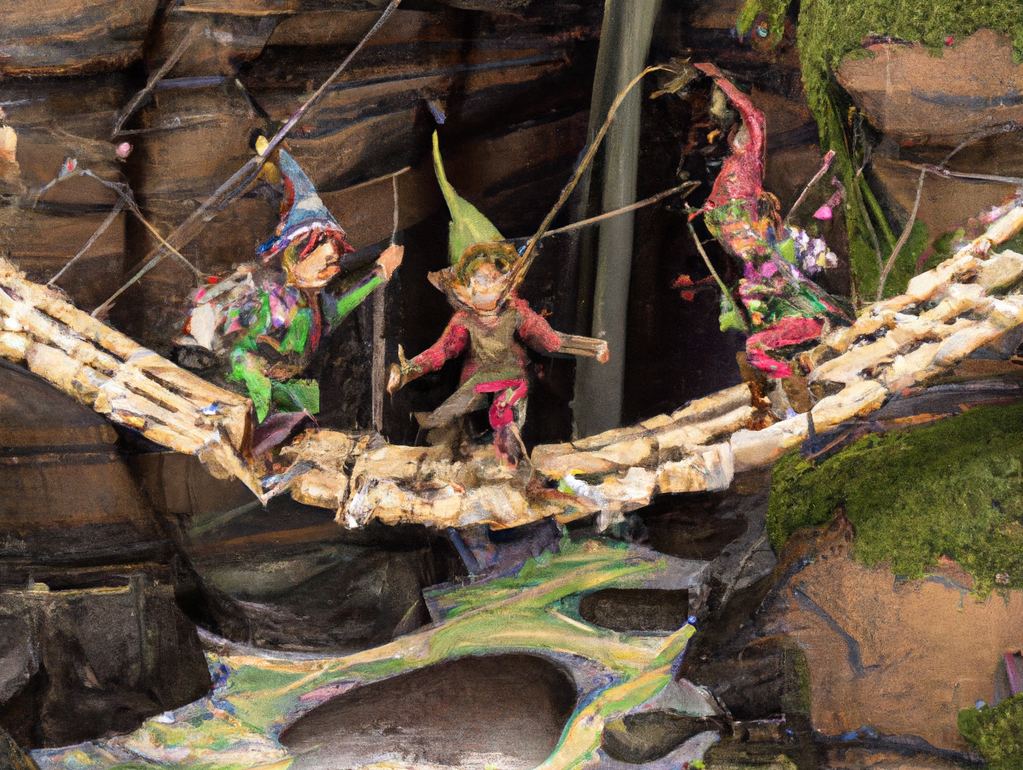 The elves are crossing a bridge, but it is a really short bridge – in fact it is the shortest bridge possible. So what did the protagonist fall into when it snapped?