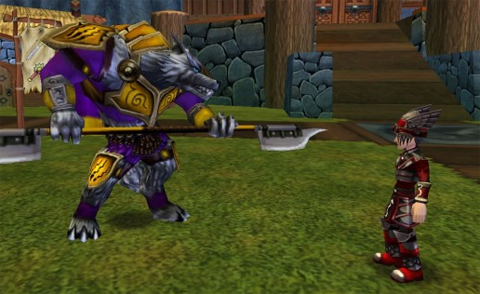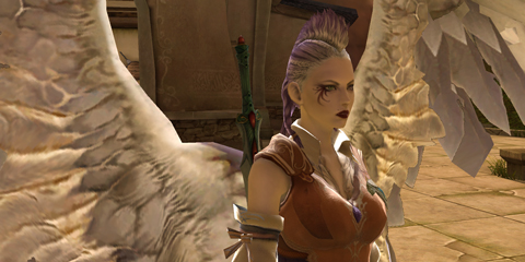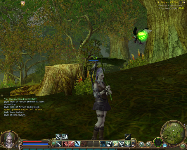 Hudson wanted a look at the Aion UI – and that’s fair. I found out that Aion was built on the Crytek engine, and that implies it won’t “run on a toaster”, the famous boast Blizzard made about WoW. Just before I took this screen shot, it started raining in game. My character looked with disgust at the sky, and since it looked like I wasn’t going to be running her anywhere right then, pulled out a broad leaf to shield her head from the rain and sulked. The game is full of cute little animations like that. Your character has a life when you’re not at the keyboard, and will always be reacting to the environment in some way if you haven’t got anything else going on. Above her head are her health and power bars. Resting works wonders, but there are potions et al to get you back into the fight. Standard stuff. ...