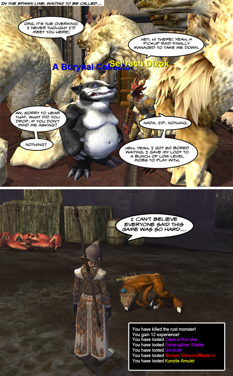 Will EverQuest 3 be going cartoony? Free Realms looks great and I know I’ll be playing it for a long while, but I came into this genre playing EverQuest (if you don’t count Nexus: Kingdom of the Wind), and I’ll leave it playing EverQuest, so now that they have Free Realms out of their system, what’s next for our my favorite franchise? One of the things I liked least about EverQuest 2 was that EverQuest still existed. Here I was in EverQuest with several high level characters, and I had to start all over? A lot of EverQuest players said, well, if I have to start over anyway, I might as well do it in World of Warcraft as EverQuest 2. Because they still had EverQuest, you see, for their Norrathian fix. ...